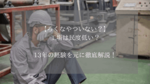 1度できた”変な空気”がずっと続くのが工場の怖さです。当たり職場は平和ですが、ハズレ職場は地獄。この差が大きいのが現実です。