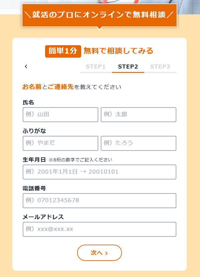 次に簡単な個人情報の入力をしましょう